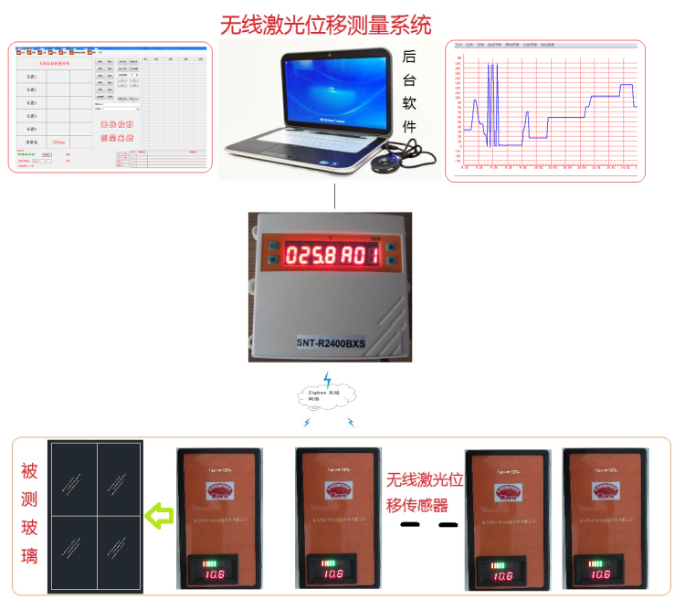 無線激光位移傳感器:由無線數(shù)據(jù)傳輸和數(shù)據(jù)測量兩部分組成。無線激光位移傳感器實時測量數(shù)據(jù)后,將位移數(shù)據(jù)通過無線方式實時的傳遞給無線位移監(jiān)測儀。